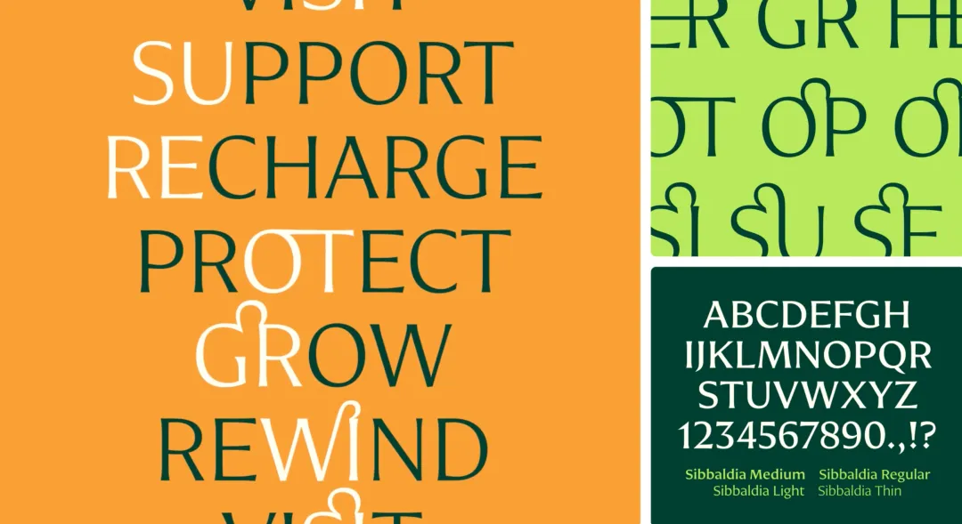 這些標志首次展示了一款全新的定制字體,共有四種字重。它是Nomada Incise的定制版,線條棱角分明,優雅別致。最細的字重中包含一系列連字,呼應了西巴爾迪亞符號及其邊框的生動呈現。