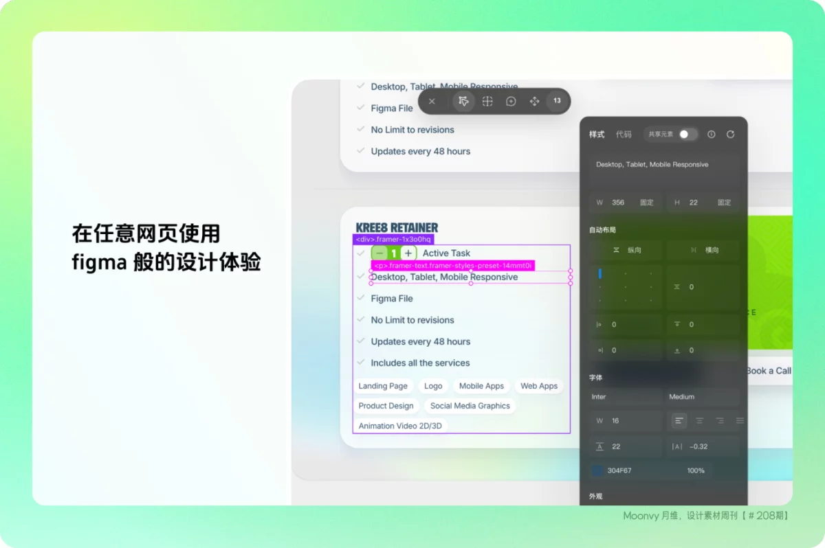 在任意網頁上實現類似 Figma 的設計體驗,調整元素樣式、添加評論,并導出結構化 Prompt 給 AI 開發與協作。