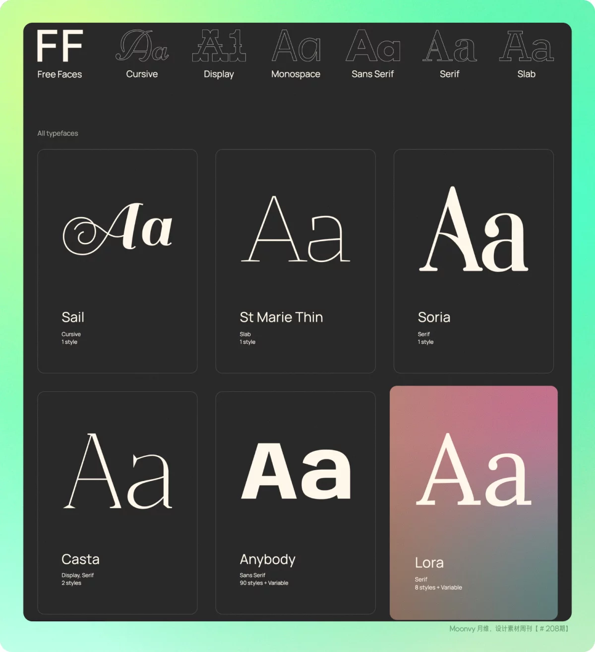 面向 UI/UX 設計師與開發者,Freefaces Gallery 是一個精選的免費開源字體合集,這意味著您可以在個人和商業項目中使用它們,而無需擔心許可問題。