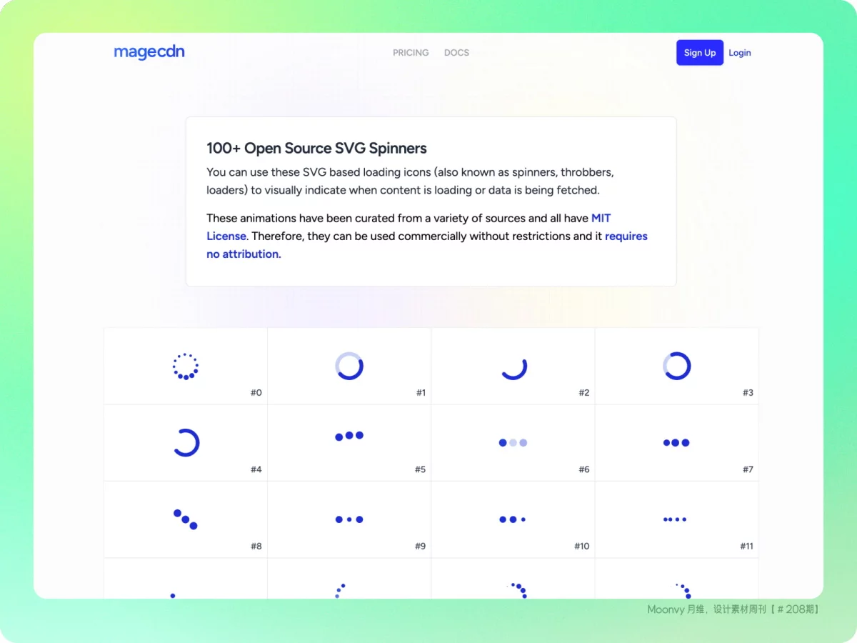 你可以使用這些基于 SVG 的加載圖標來直觀地指示內容。 這些動畫來自多種來源,均采用 MIT 許可證。因此,它們可以無限制地用于商業用途,且無需署名。
