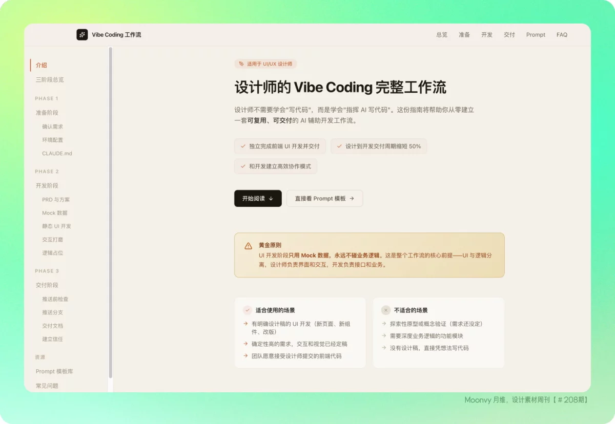 作者根據自身經驗整理了一份「面向 UI/UX 設計師 的 Vibe Coding 完整工作流指南」從用 AI 輔助開發到 可交付、可上線。