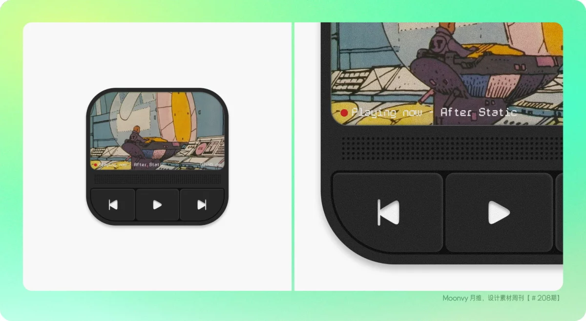 作者在 Figma 中 1 小時繪制的小組件,好玩的是發帖后有人回復了在線的地址,將組件實現為了可以使用的音樂播放器,在 AI 時代還是需要審美創造力的,可以通過鏈接體驗