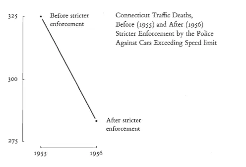 一個誠實的設(shè)計產(chǎn)品絕不能聲稱它并沒有的功能,絕不能吹噓。對于很多人來說,”設(shè)計”和”誠實”是兩個很難放在一起的詞,但是誠實對于設(shè)計來說太重要了,拿我們都相信的數(shù)據(jù)圖表來說,如果你覺得,一個數(shù)據(jù)或者一個圖表是最力的證據(jù),是無可爭辯的,那你就錯了,圖表也可以撒謊。信息設(shè)計和數(shù)據(jù)可視化之父 Edward Tufte 在他的書“The Visual Display of Quantitative Information” 中說,當(dāng)電視里的產(chǎn)品或者圖表說謊的時候,這個謊言就會被擴大千萬倍。如果紐約時報的報道插入了說謊的圖表,那么這個謊言就被擴大了幾百萬倍。書中有這么一個圖,圖中表示施行限速前后交通死亡數(shù)量的變化。