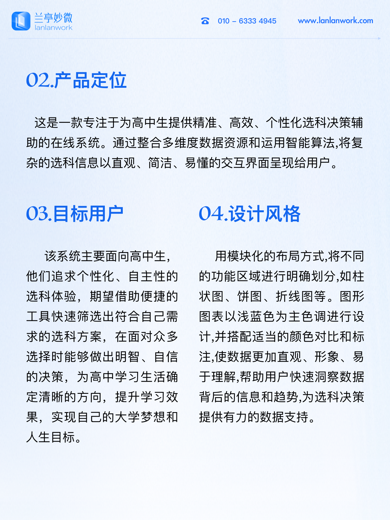 蘭亭妙微(藍藍設計)m.wtxcl.cn 是一家專注而深入的界面設計公司,為期望卓越的國內外企業提供卓越的大數據可視化界面設計B端界面設計桌面端界面設計APP界面設計圖標定制用戶體驗設計交互設計UI咨詢高端網站設計平面設計,以及相關的軟件開發服務,咨詢電話:01063334945。
