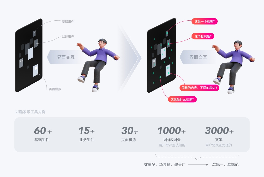 群核UED搭建設(shè)計規(guī)范體系已有多年,即便有相對豐富和完整的設(shè)計體系,我們呈現(xiàn)給用戶交互界面仍有體驗(yàn)不一致、操作難理解、同一對象不同表達(dá)的問題,為什么?