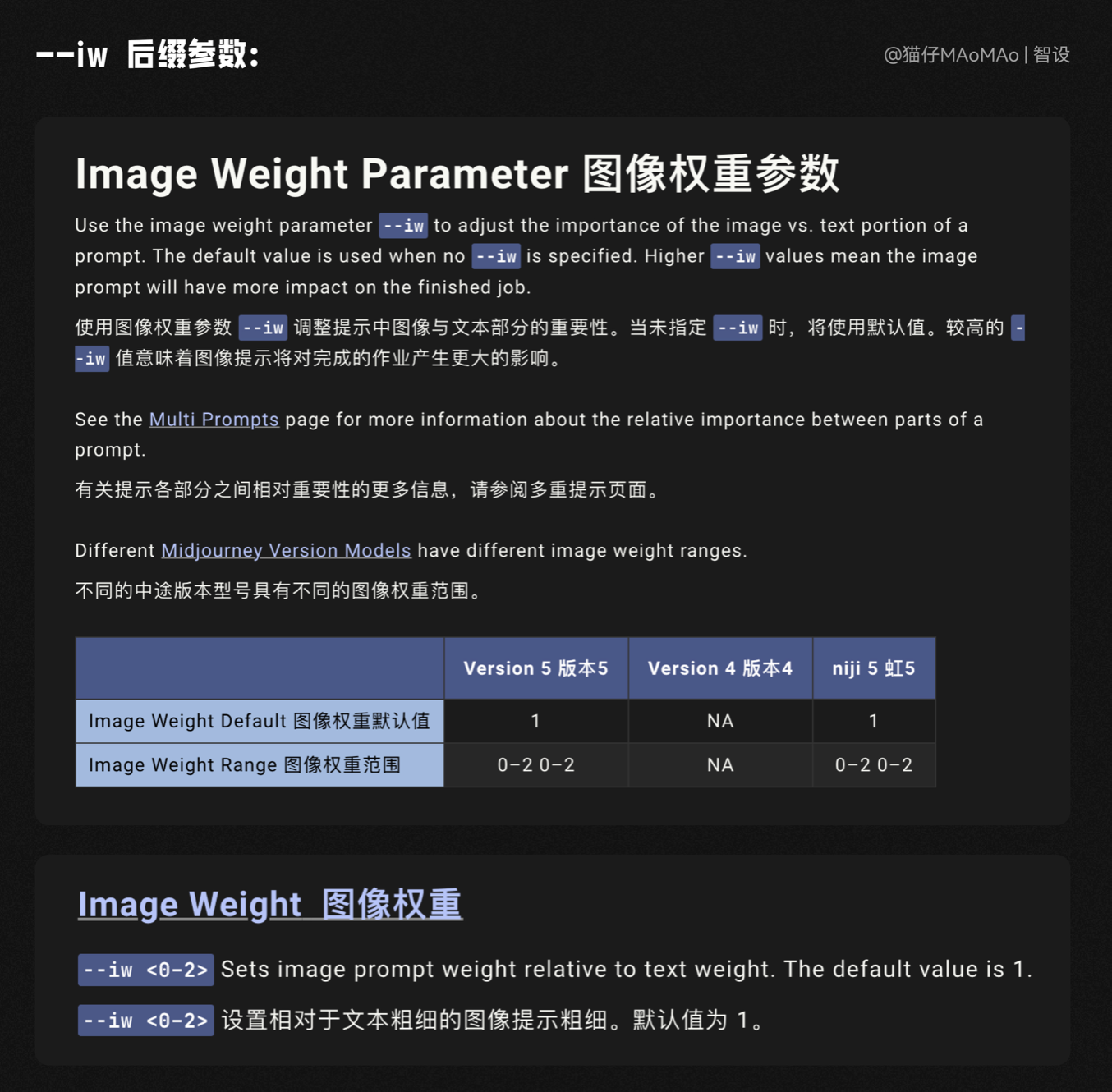 這個時候不要慌,也不要著急去改關(guān)鍵詞,我們只需要添加上一個神奇的后綴“--iw 2”,官方文檔的翻譯中,這個參數(shù)叫做“圖像權(quán)重參數(shù)”,用來調(diào)整關(guān)鍵詞中文本與參考圖的相似度,默認(rèn)值為 1 ,范圍為 0~2 ,值越高,生成的圖與原圖更像,注意在 V5 和 niji 模型中使用才能生效。