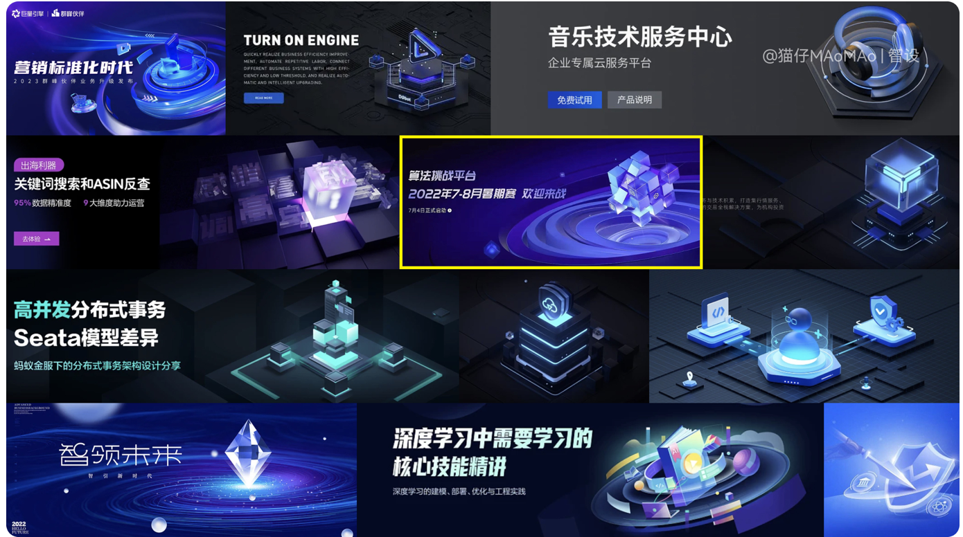 一般我們生成B端視覺,都是banner組圖等,不是單張出現(xiàn),想要保持風(fēng)格不變的同時,主題內(nèi)容不同,只需要更改主體關(guān)鍵詞即可實現(xiàn),最終我們就得到了下圖需要的所有主視覺元素。