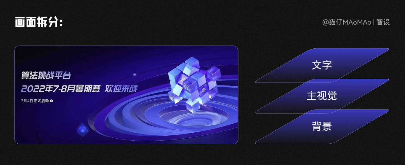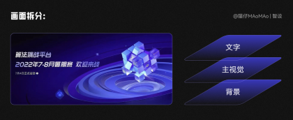 確定參考方向后,腦袋里面大致有了畫面思路,主視覺在畫面右方,螺旋狀背景突出主視覺,文字排版在左邊,整體色調(diào)為藍(lán)色+青色光感。這里我們對所選參考圖進(jìn)行拆分: