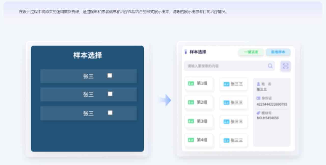 在設計過程中將原來的邏輯重新梳理,通過圖形和患者信息和治療流程結合的形式展示出來,清晰的展示出患者目前治療情況。