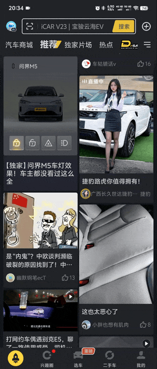 如今各大 APP 的信息流千篇一律,都是圖文、視頻、廣告的組合,用戶在不斷滑動(dòng)中逐漸失去了新鮮感。懂車帝巧妙地為了推廣自家的在線 3D 看車功能,為信息流帶來了全新玩法!他們?cè)谑醉?yè)信息流中嵌入了可交互的 3D 汽車模型,這種既能觀看又能操作的創(chuàng)新形式,與傳統(tǒng)的圖文視頻形式形成鮮明對(duì)比,立即吸引了用戶的注意力,讓人忍不住想要嘗試。