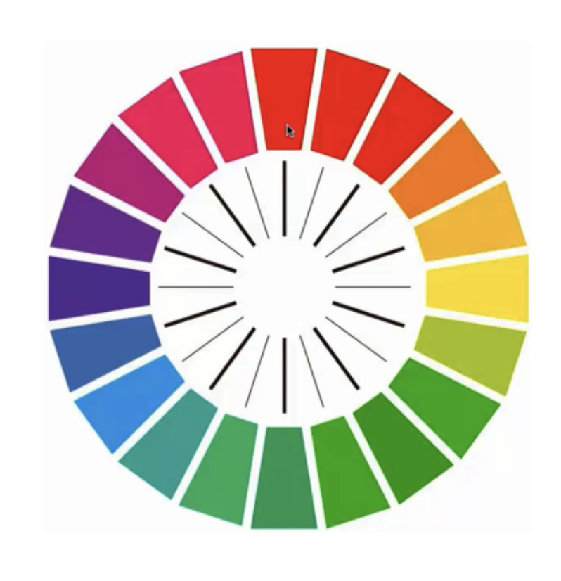 • 光譜順序:紅、橙紅、黃橙、黃、黃綠、綠、綠藍(lán)、藍(lán)、藍(lán)紫、紫、紫紅,十二色相環(huán)每色相距 30 度,二十四色相環(huán)每色相距 15 度。