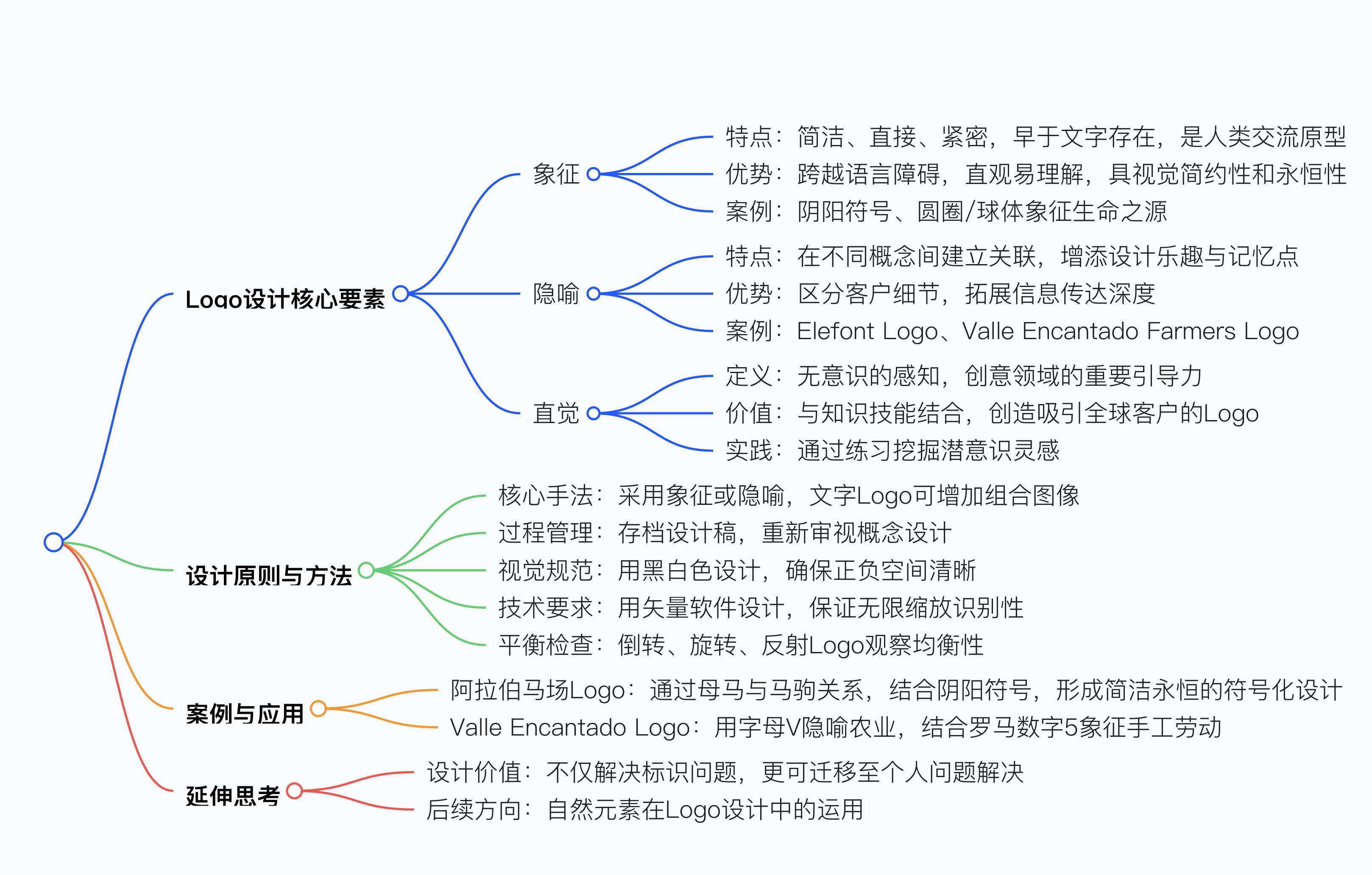 • Logo 設計不僅是視覺創作,更是解決問題的思維訓練,其原則(如挖掘關聯、平衡要素)可遷移至個人問題解決。