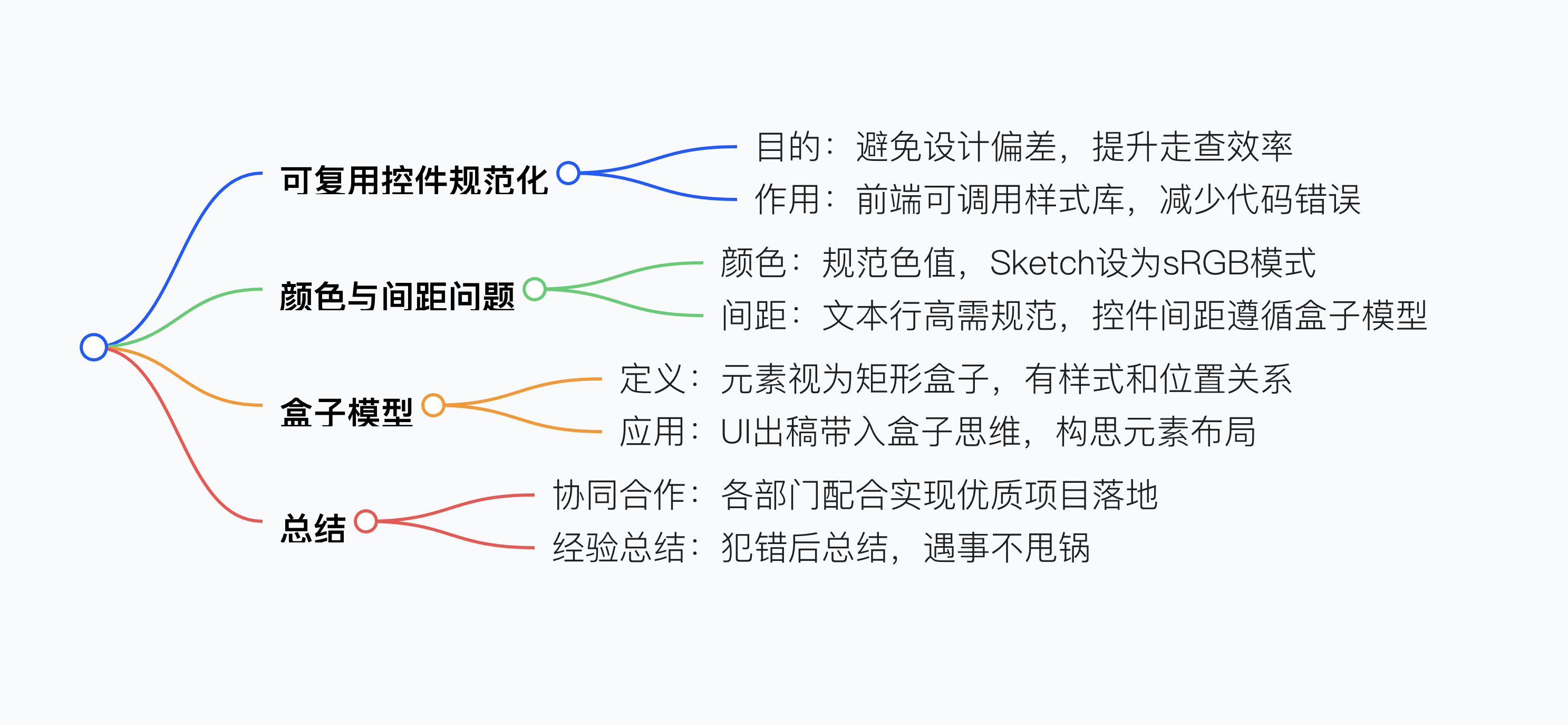 1. 原因:輸出設計規范、控件規范與交互規范,能避免與其他設計師協同或獨自出稿時,相同控件樣式或交互不一致,也便于前端在樣式庫中寫標準控件樣式并調用,類似 Sketch 中搭建 Symbol,減少手動書寫代碼的遺漏和錯誤,提升迭代效率。