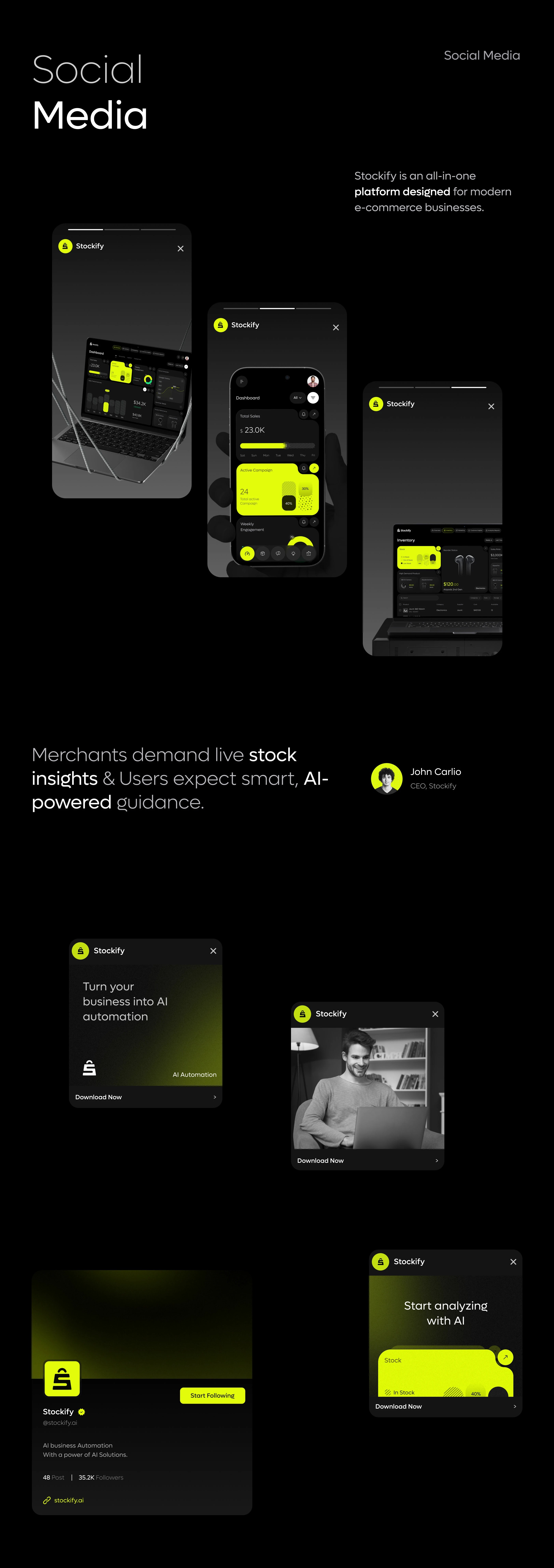 在信息密集的 B 端 SaaS 產(chǎn)品中,如何用清晰、節(jié)制而具有未來感的設(shè)計,提升用戶的效率和信任感?Stockify 的界面是一個值得研究的參考。一款聚焦 AI 推薦和智能庫存管理的電商 SaaS 工具。這類產(chǎn)品的設(shè)計挑戰(zhàn)在于 —— 如何讓用戶信任 AI 決策,并在復(fù)雜的信息中快速做出行動。它不是做“好看”的界面,而是通過界面?zhèn)鬟_控制感與專業(yè)感。