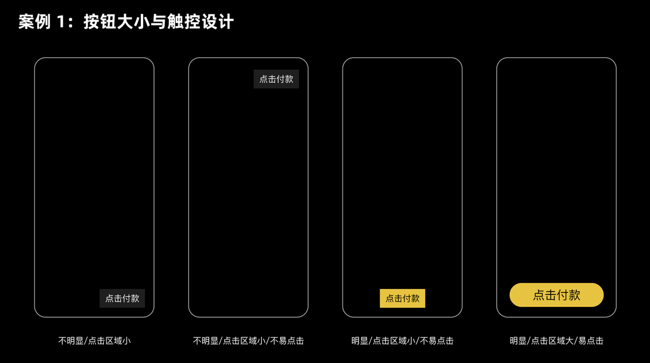 比如支付頁面的 “確認付款” 按鈕,幾乎所有 APP 都會把它設計成頁面中最大、最醒目的元素,不僅尺寸足夠,還會放在拇指容易觸及的區域(如手機下半屏)。這樣一來,用戶無需猶豫就能快速點擊,既減少誤操作風險,也間接提升了支付轉化率。