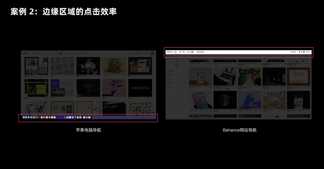 屏幕邊緣是被很多設計師忽略的 “黃金區域”—— 因為邊緣能擋住手指或鼠標的移動,相當于給目標加了 “天然邊界”,用戶不用刻意控制精度就能快速定位。這就是為什么 Mac 的 Dock 欄、Windows 的任務欄都放在屏幕底部或側邊,而不是中間。