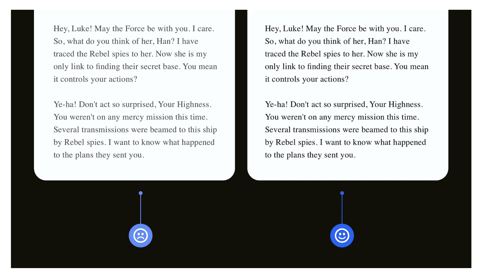 優(yōu)化方法很簡(jiǎn)單:將深色背景從 “純黑” 改為 “深灰(如 #1A1A1A)”,純白文字的不透明度調(diào)整為 85%-90%(如 #FFFFFFE0)。這種調(diào)整不會(huì)影響視覺(jué)美觀,卻能讓散光用戶(數(shù)量遠(yuǎn)超預(yù)期)更舒適地使用產(chǎn)品,提升留存率。