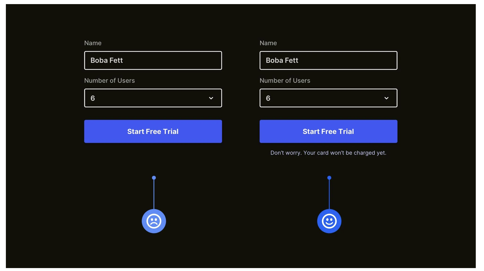 用戶對(duì) “未知操作” 會(huì)有天然顧慮:點(diǎn)擊 “免費(fèi)試用” 后,會(huì)不會(huì)自動(dòng)扣費(fèi)?填寫手機(jī)號(hào)后,會(huì)不會(huì)收到垃圾短信?這些顧慮會(huì)讓他們猶豫是否點(diǎn)擊 CTA(行動(dòng)召喚)按鈕。