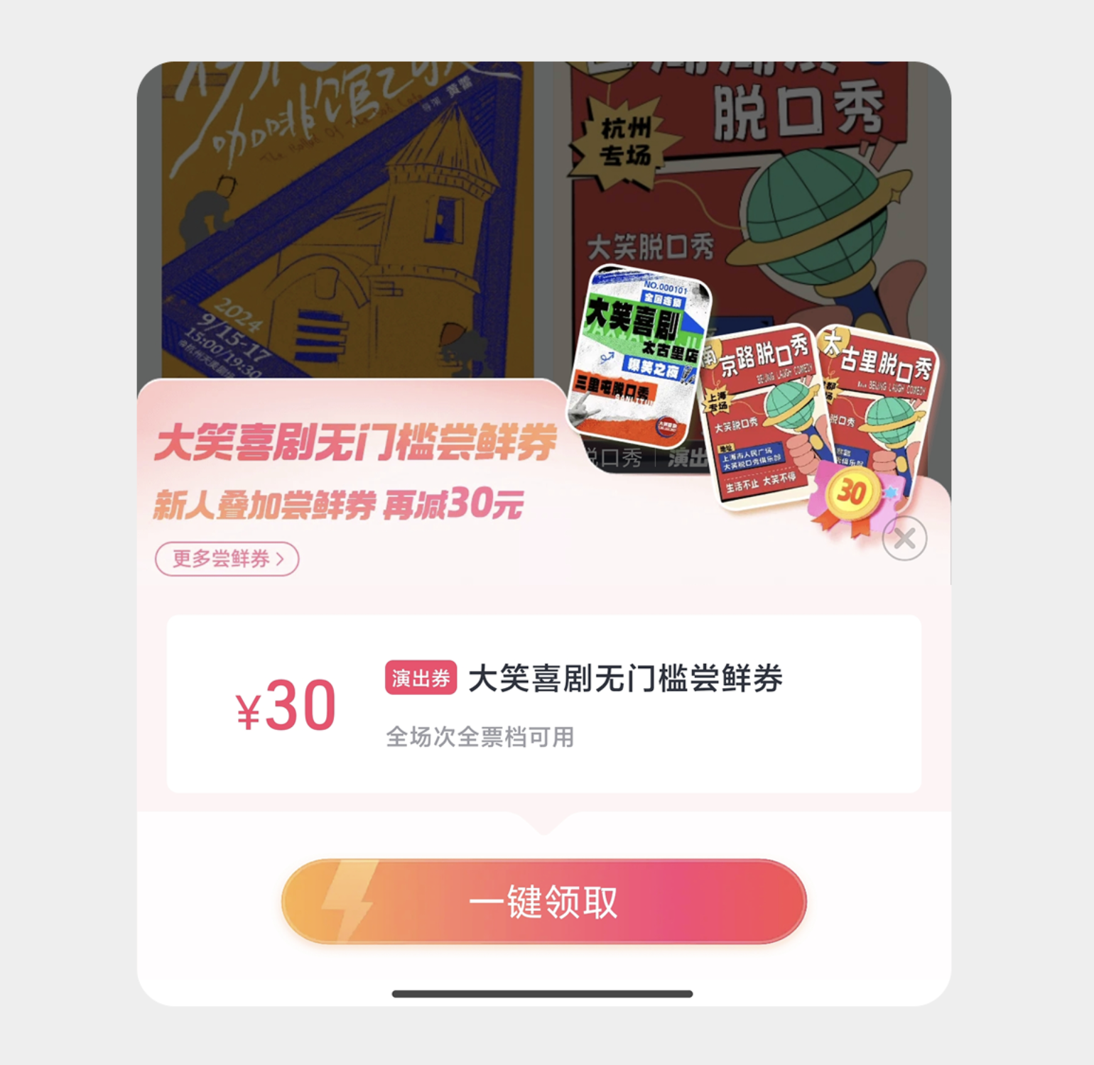 大麥首頁的自動彈出領券設計,把 “激勵下單” 和 “氛圍營造” 做到了兼顧。它貼合用戶閑逛瀏覽的場景,彈窗不會讓人覺得突兀干擾,反而能精準擊中潛在消費需求。