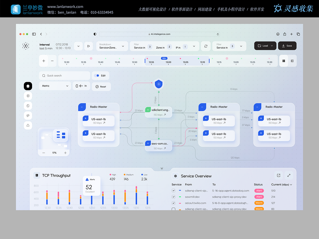 當后端服務架構還困在 “代碼式晦澀” 與 “拓撲圖雜亂” 的表達困境中時,蘭亭妙微這套服務監控界面,用「可視化敘事」與「體驗溫度」,把抽象的網絡鏈路變成了 “會呼吸的系統地圖”。它不僅是一個監控面板,更是一場 “讓技術架構被看見、被讀懂” 的設計革新。
