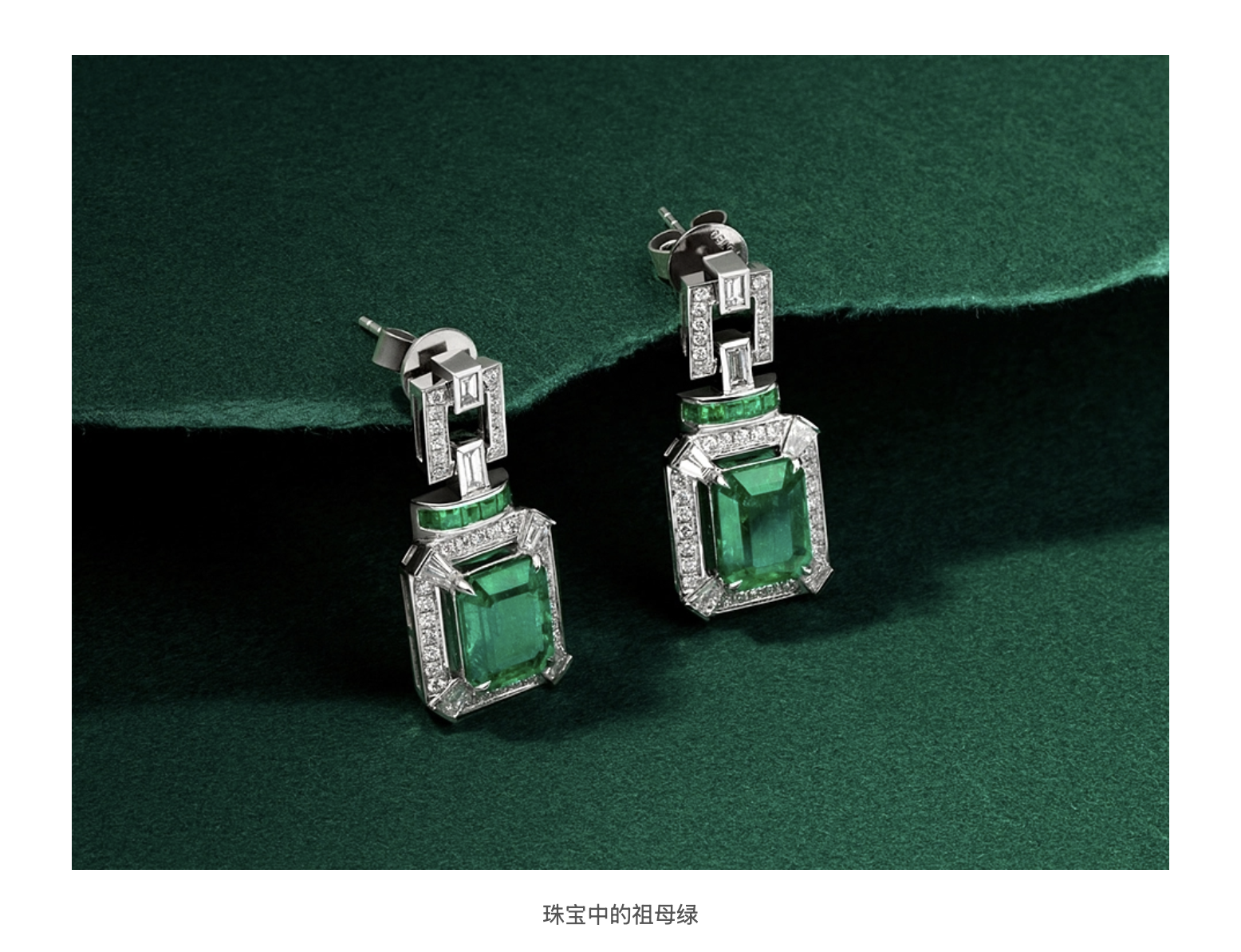 有趣的是,"祖母綠" 之名源于古波斯語 "Zumurud" 的音譯,元代王實甫在《西廂記》中將其譯為現名,因其文雅神秘的意境得以流傳,堪比徐志摩將 "Firenze" 譯為 "翡冷翠" 的信達雅。祖母綠的綠色既不似墨綠沉悶,也不似翠綠輕佻,自帶高貴沉靜的復古氣質,如今常被用于高定禮服、歐式室內設計與珠寶設計中,成為高端審美 的象征。