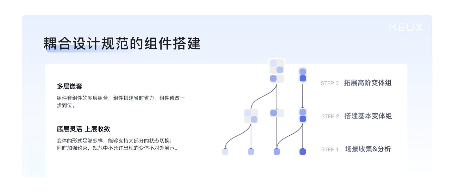 搭建 "三好" 組件的核心思路是 "多層嵌套、底層靈活、上層收斂",通過結構化的流程實現規范與靈活性的平衡,具體可分為三個關鍵步驟: