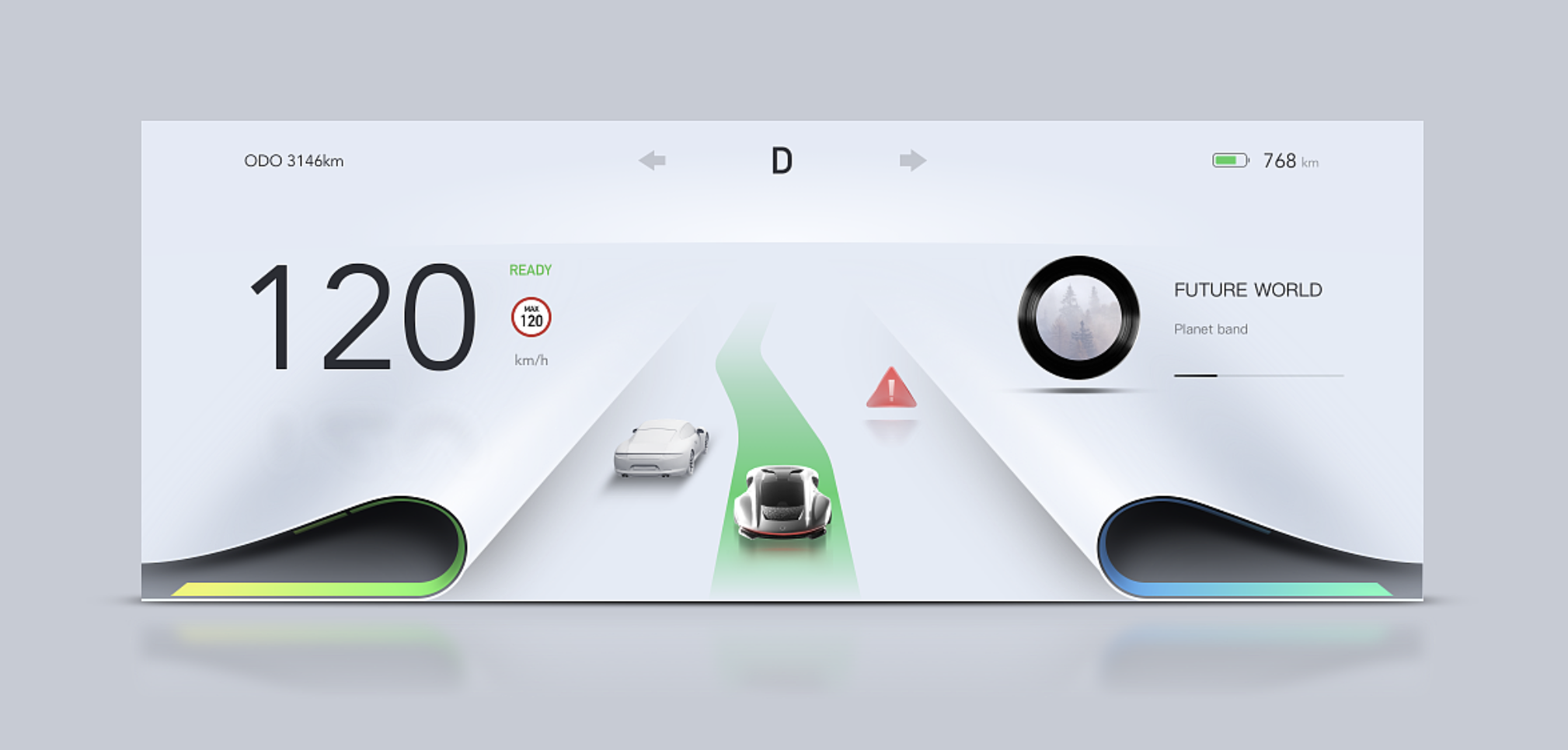 聚焦設(shè)計(jì)主題,將核心風(fēng)格做到極致。若主打 “未來星際風(fēng)”,可在儀表背景添加動(dòng)態(tài)星軌紋理,功能模塊采用全息投影式設(shè)計(jì),警告提示以 “星際信號(hào)” 形式呈現(xiàn);若側(cè)重 “自然生態(tài)風(fēng)”,可將電量顯示設(shè)計(jì)為生長的植物圖形,續(xù)航里程隨電量變化呈現(xiàn)葉片舒展或收縮狀態(tài),通過動(dòng)態(tài)效果傳遞情感。風(fēng)格極致化需避免 “形式大于內(nèi)容”,所有設(shè)計(jì)元素都需為功能與體驗(yàn)服務(wù)。