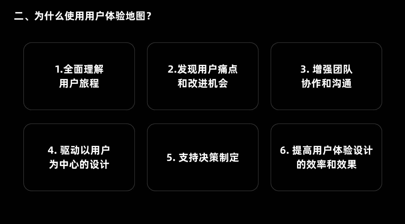 制作用戶體驗地圖能為產品團隊帶來多維度價值,從認知、協作到決策形成全鏈路賦能,核心體現在六大方面: