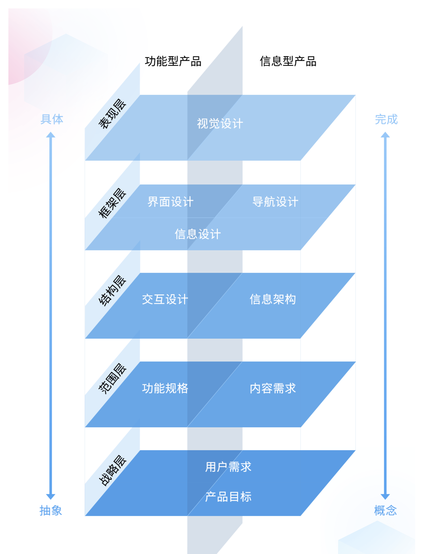 無論 UX 設計的形式如何變化,其核心框架始終圍繞《用戶體驗要素》提出的戰略層、范圍層、結構層、框架層、表現層五個層級展開。這五個層級從抽象到具體、從概念到落地,構成了 UX 設計的完整邏輯體系,既是分析產品的工具,也是從 0 到 1 打造產品的核心方法論。