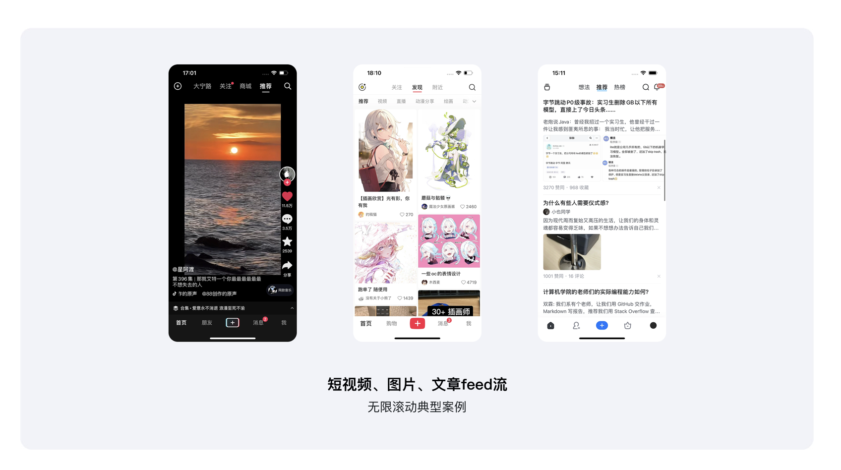 無(wú)限滾動(dòng)是短視頻和各類(lèi)內(nèi)容平臺(tái)的核心設(shè)計(jì)之一,它通過(guò)算法實(shí)時(shí)推送新內(nèi)容,徹底消除了傳統(tǒng)頁(yè)面的翻頁(yè)按鈕和內(nèi)容終點(diǎn)。只要用戶不停下滑動(dòng)的手指,屏幕上就會(huì)一直出現(xiàn)新的內(nèi)容,這種設(shè)計(jì)讓用戶失去了對(duì) “內(nèi)容邊界” 的感知,總抱著 “下一條說(shuō)不定更有趣” 的期待。