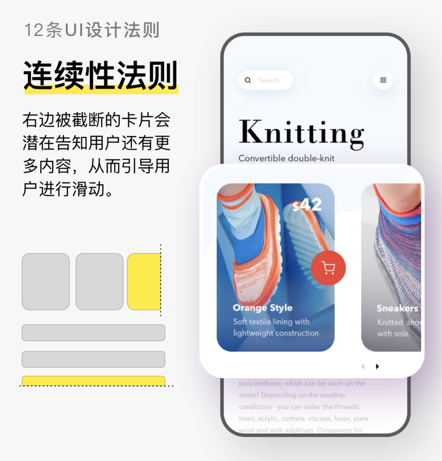 視覺連續性,能讓信息閱讀更連貫,同時隱性引導用戶完成預期操作,比如滑動、翻頁、點擊等。