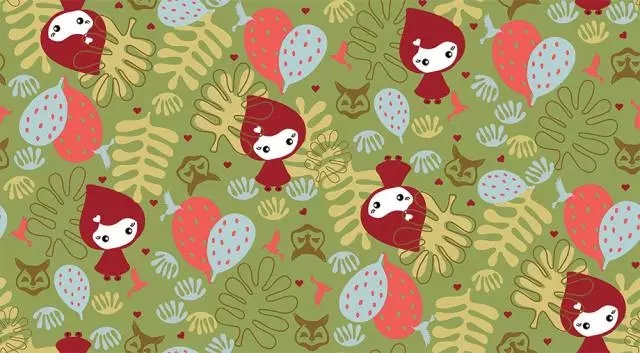 綠色與紅色、橙色與黃色等暖色的搭配時,重要的是要強調(diào)兩者之中的一個。比如,在上圖中的主色為綠色,點睛色就為紅色和黃色,其中紅色的顏色較深,突出強調(diào)圖案中的人物形象,而其他的色彩就退而次之,綠色的飽和度較低且偏黃,與黃色相得益彰地變?yōu)榱吮尘埃o助突出了點睛色。