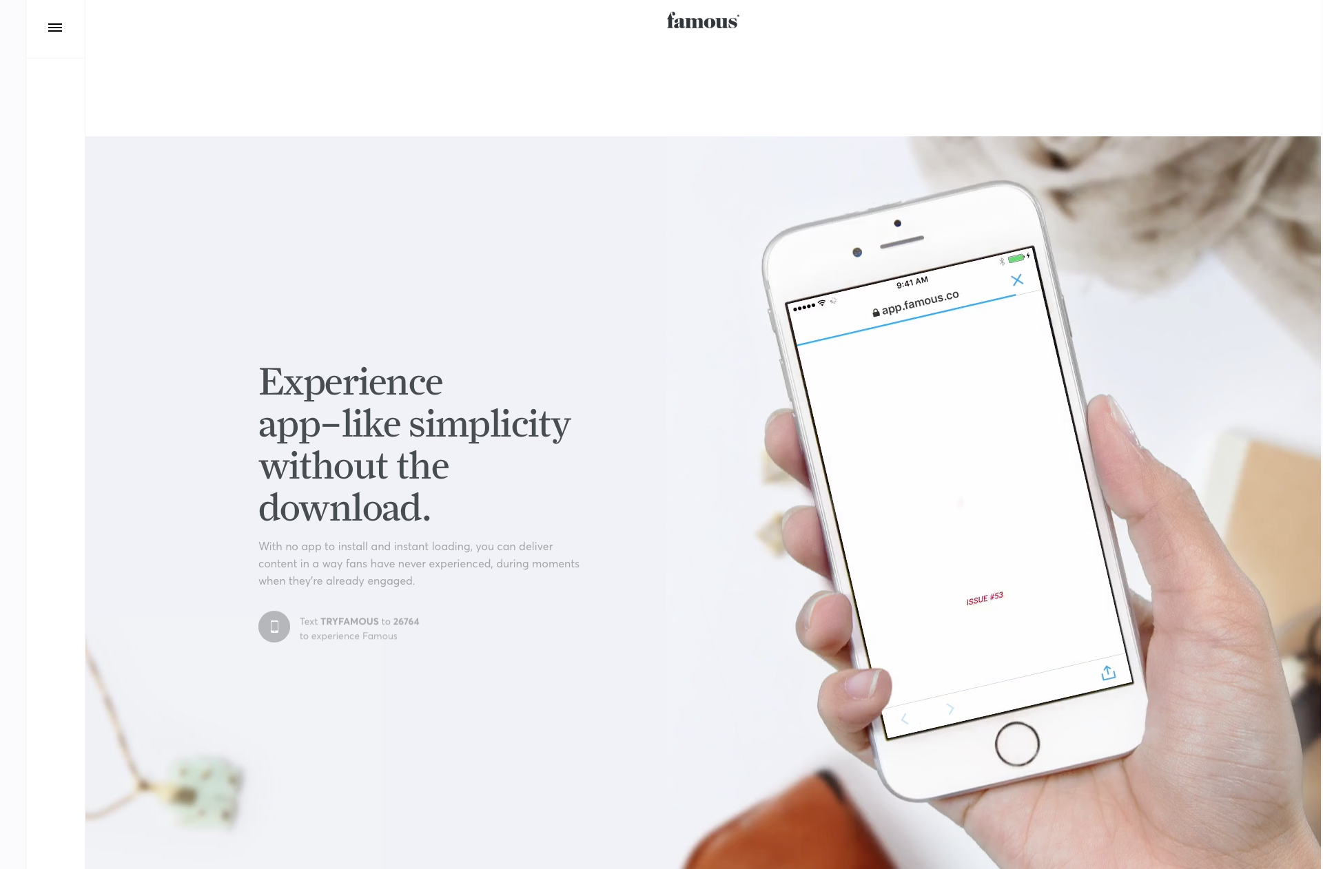 5 https://famous.co 大氣的首先是格局,其次是創新的網站動效、視頻 ,而后是把平面設計中的設計方法,善用對比,字體的選擇、大小,主次的不同字體色彩,綜合應用到網站中,很有設計感,品質不俗。