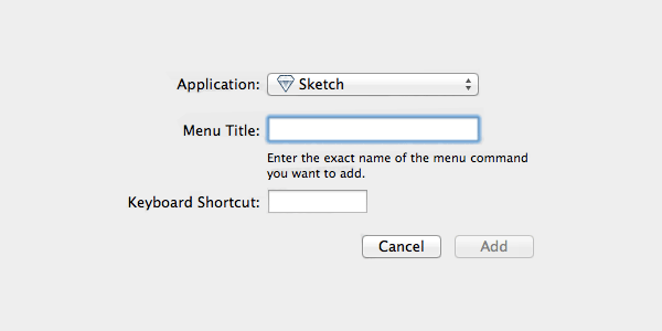 您也可以通過OS X的系統偏好設置 設定你自己的快捷鍵。其中一些例子都寫在Sketch Shortcuts的底部。