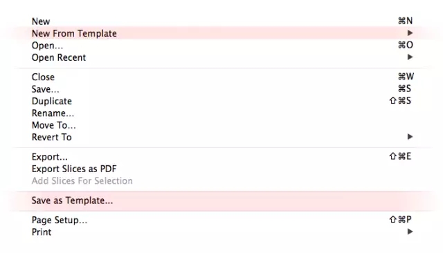 Sketch 可讓你直接從范本(Templates) 創建一個新的文件,點擊菜單選項 File > New from template 便可。你也可以把當前的文件保存為模板(Templates),點擊 File > Save as template 便成。