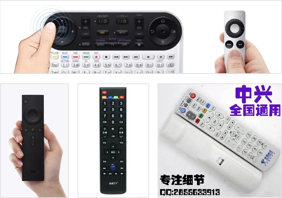 當我們用手指快速便捷地在手機屏幕上點擊或滑動時,主流電視大屏及應用的操作還是:使用遙控器進行操作。而市面上不同電視生產商生產的遙控器也有著不同的造型和按鍵數量,如圖1,分別展示了:蘋果、谷歌、小米、樂視和中興機頂盒的遙控器。