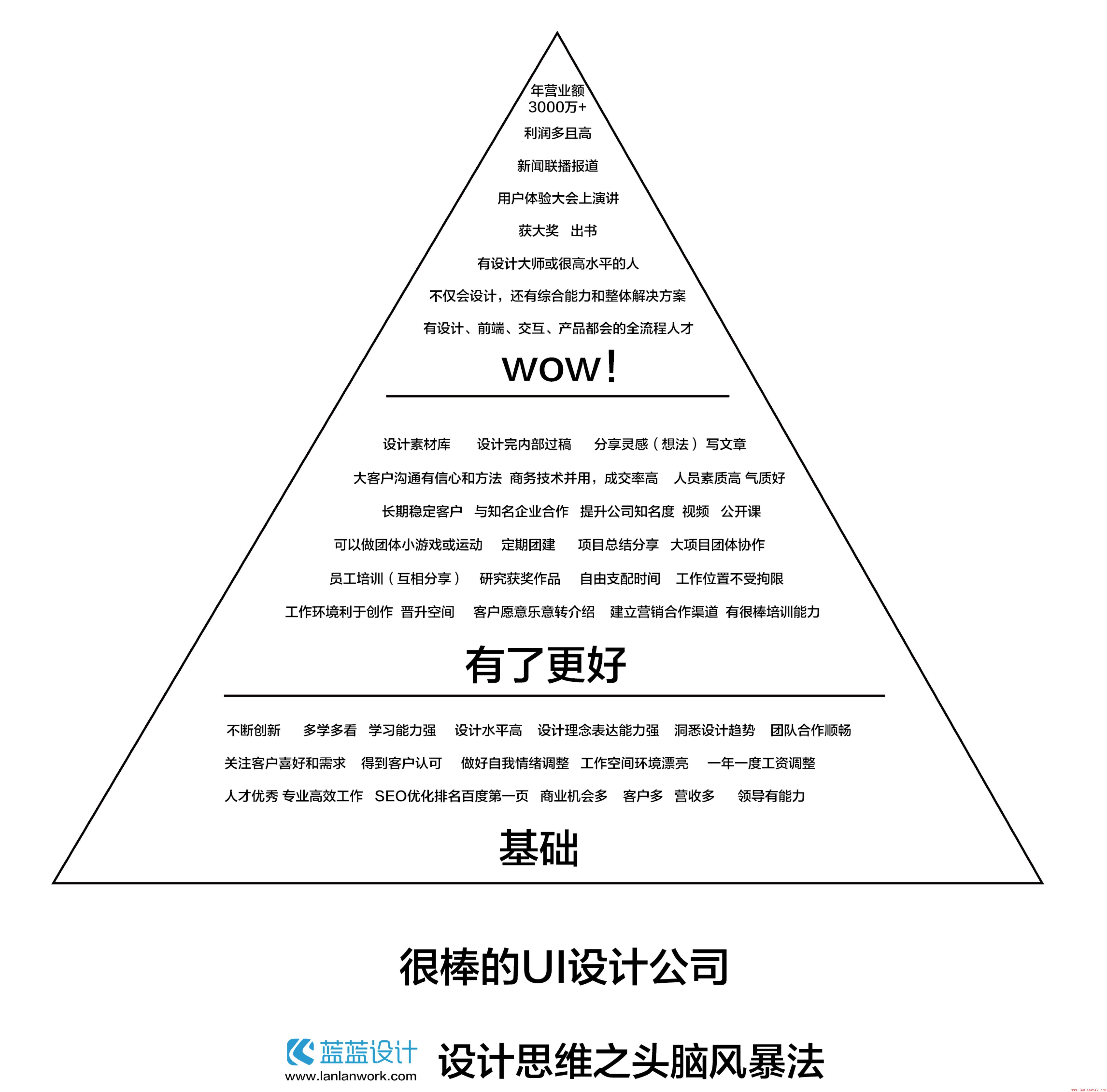 藍藍設(shè)計組織部分小組成員以“如何成為一家很牛的UI設(shè)計公司?”為主題進行了一次頭腦風(fēng)暴活動。我們將過程做了一下梳理。