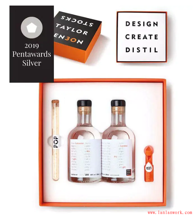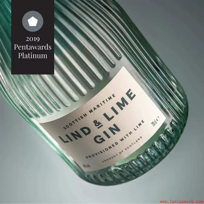 今年飲料類的「鉑金獎」被來自英國愛丁堡的LIND & LIME GIN獲得。包裝設計由蘇格蘭的創(chuàng)意團隊 Contagious 操刀,酒瓶設計的靈感源于品牌商The Port of Leith Distillery所在的Leith 地區(qū)海岸上具有歷史意義的工業(yè)建筑以及老窯.