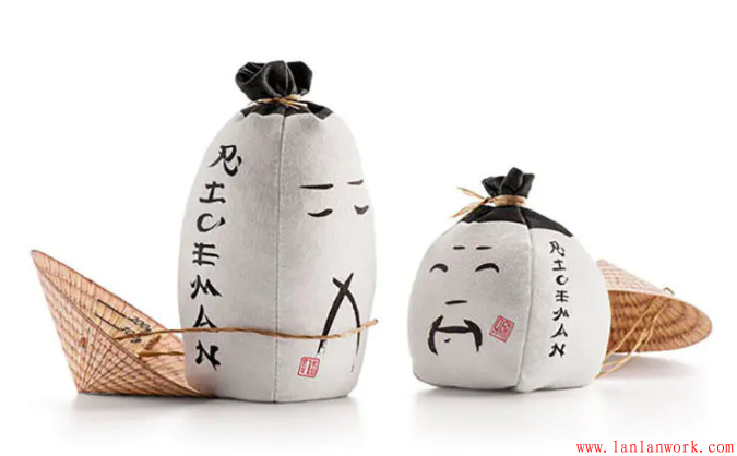 包裝外形以亞洲稻農(nóng)戴蓑帽的傳統(tǒng)形象為原型,圓錐形帽子紙盒蓋子內側則巧妙與標記測量米量的米杯結合,實用又環(huán)保。兩種不同尺寸的袋子分別裝盛不同的大米類型:短粒米為小袋子,長粒米為高袋子。