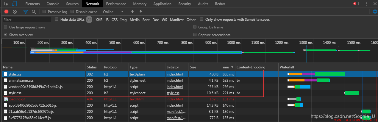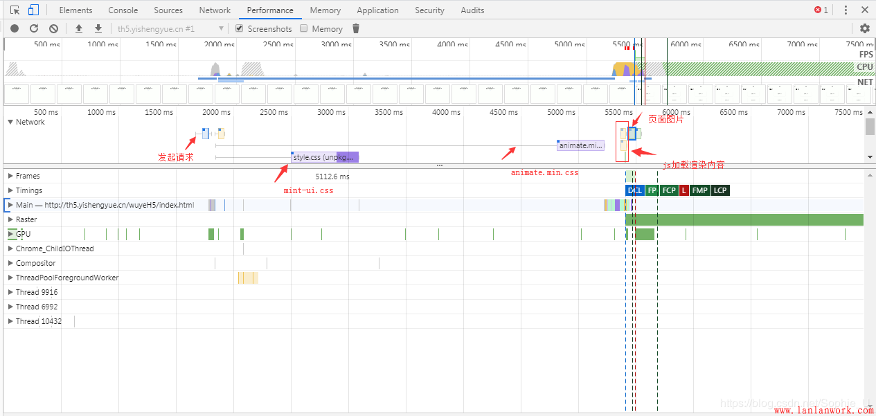 通過訪問線上環境,結合Chrome devtool中Network和Performance功能可以具體分析整個白屏的耗時主要在哪一塊兒