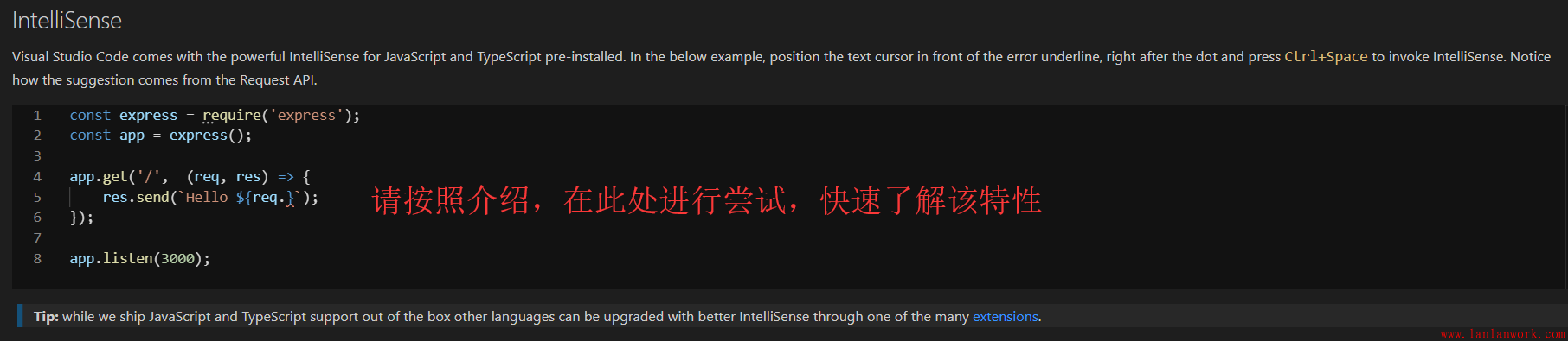 Visual Studio Code 預(yù)裝了強(qiáng)大的JavaScript和TypeScript智能感知。
