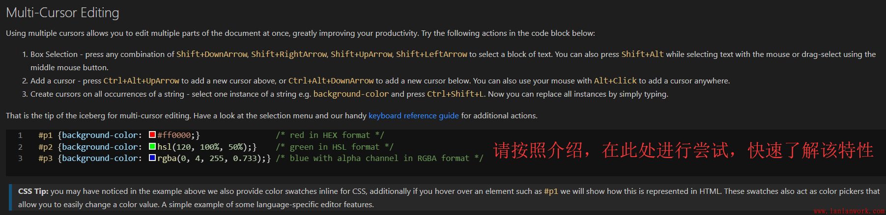 其實(shí)VSCode編輯器本身自帶了一個功能(Interactive Editor Playground :可以讓你快速了解VSCode的特性,并且是可以交互的),