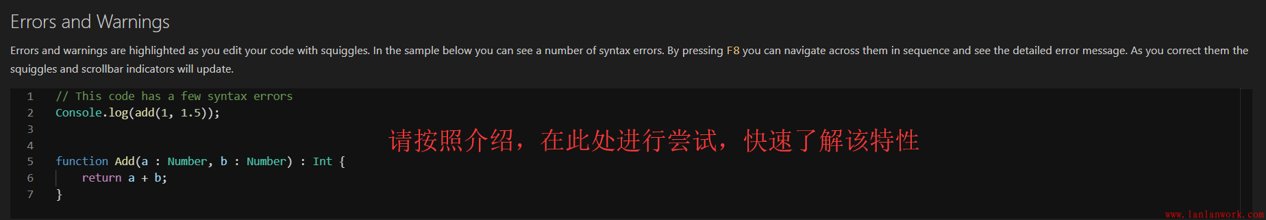 錯誤和警告將在你出現(xiàn)錯誤時,高亮該代碼行