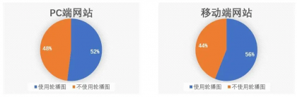 在美國一份針對 50 家頂級(jí)零售電商網(wǎng)站的統(tǒng)計(jì)中,發(fā)現(xiàn)輪播圖被廣泛運(yùn)用于電商網(wǎng)站:PC 端 52%的電商網(wǎng)站使用輪播圖,而與此同時(shí)移動(dòng)端 56%的電商網(wǎng)站使用輪播圖。(以下圖表是譯者個(gè)人為方便大家理解制作的)