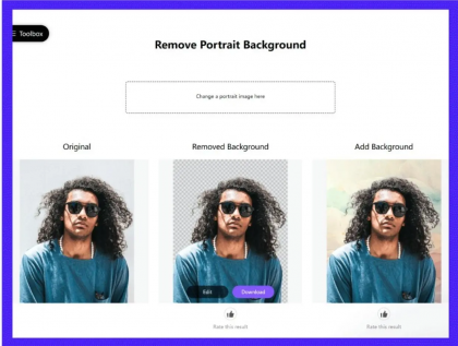 Toolkit 是一個(gè)多功能的圖片處理網(wǎng)站,其中就包括一鍵人像摳圖的功能。同樣是免費(fèi)使用,無需登錄注冊。進(jìn)入網(wǎng)頁后,上傳本地圖像網(wǎng)頁就會(huì)開始自動(dòng)處理,支持為摳圖后的人像添加自定義背景。
