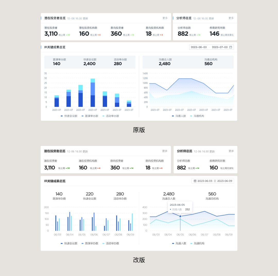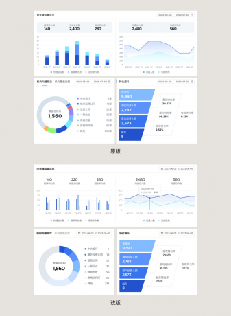 但重要不代表需要過度傾注和堆疊視覺元素,過度的設計會讓界面看起來有 “飛機” 敢,不僅不真實的印象產生了,還會顯得業余不夠自信。同時任何項目中表盤頁過度設計都會對整個項目造成負擔,后續的頁面要怎么設計才能不和它產生隔閡,保持一致性。