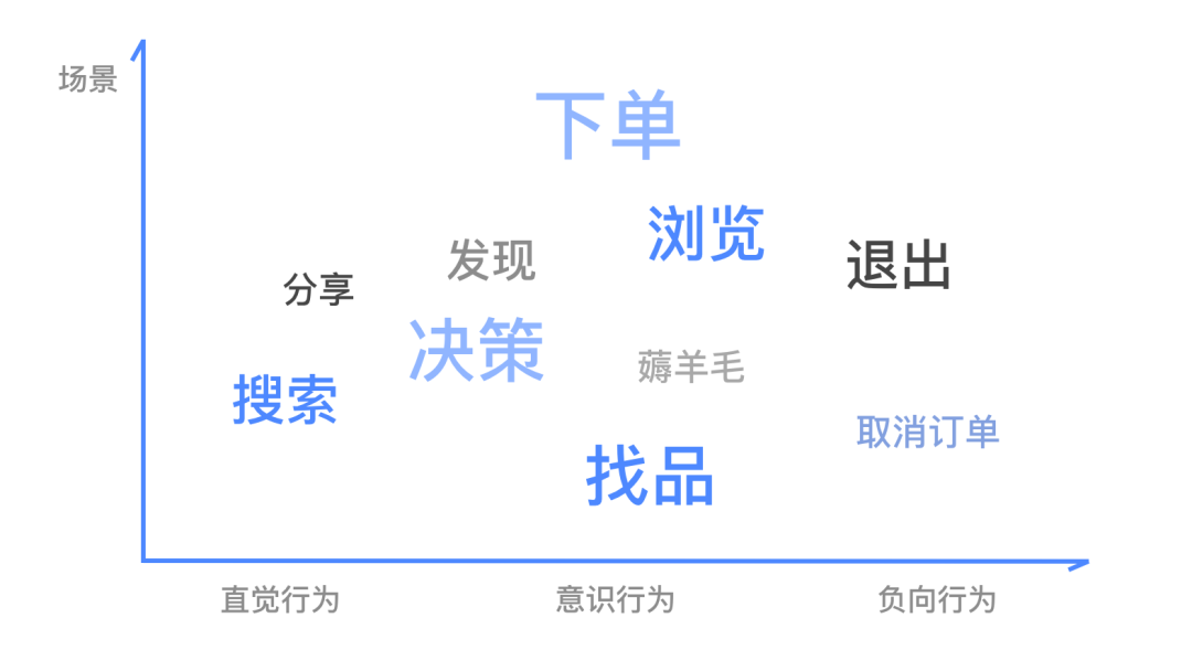 意識行為運作緩慢,對于下一步行為操作決策效率較低。面對意識行為,需要根據用戶的所處場景,分析用戶需求及可能引導的用戶意圖,在用戶當前行為的基礎上,尋找相關機會啟發引導用戶后續行為,為轉化增加一點“額外”的價值。