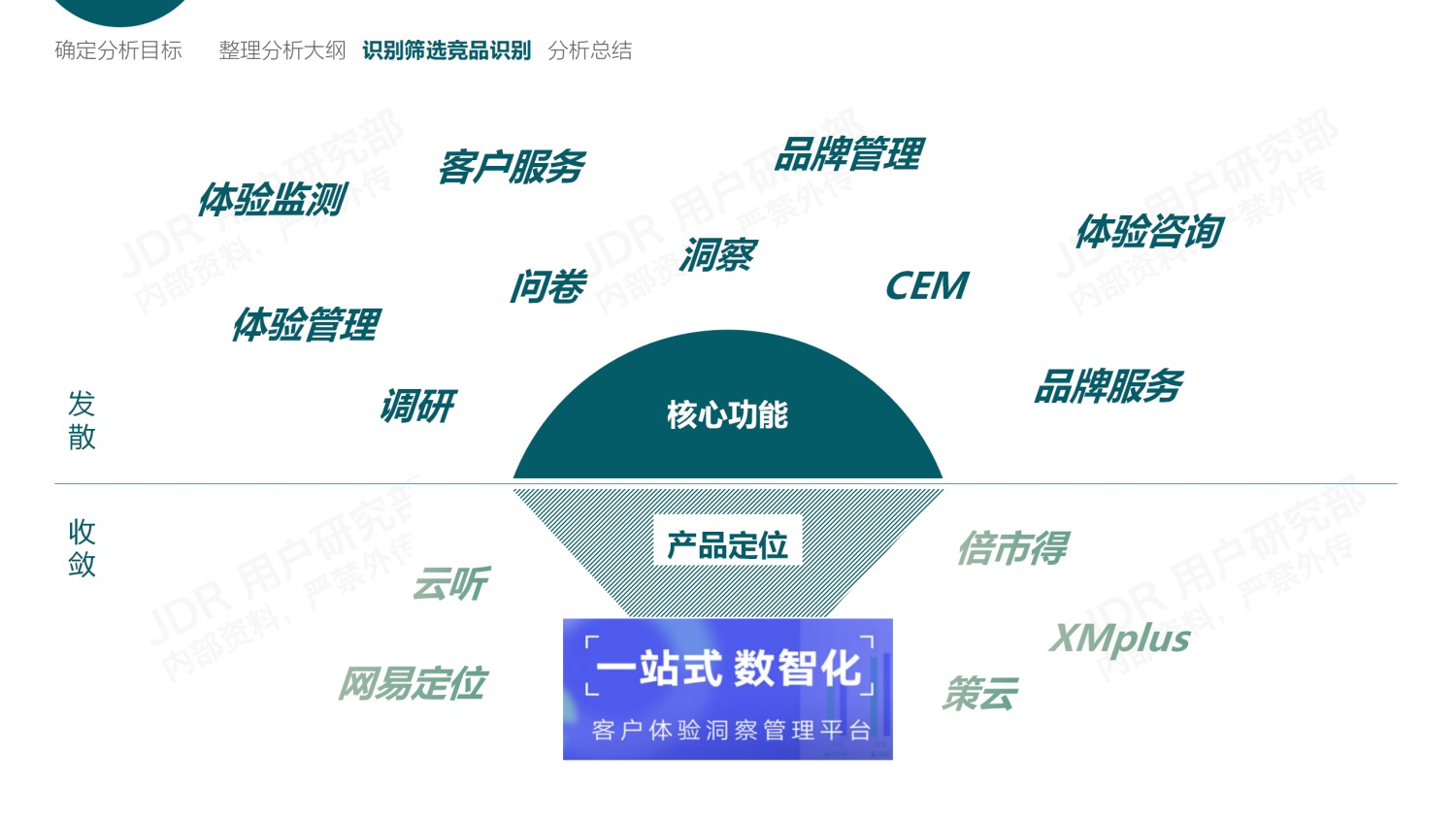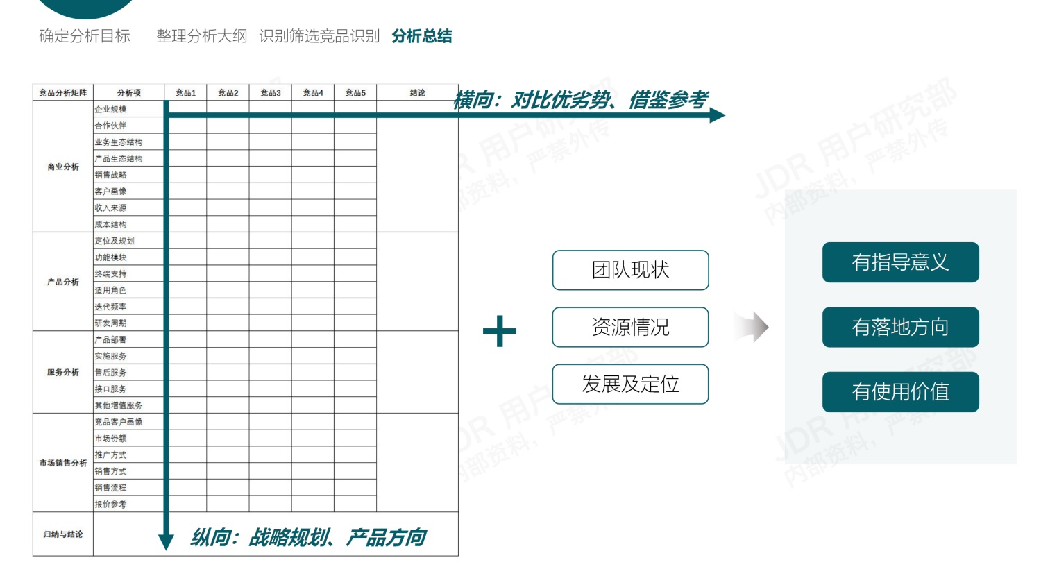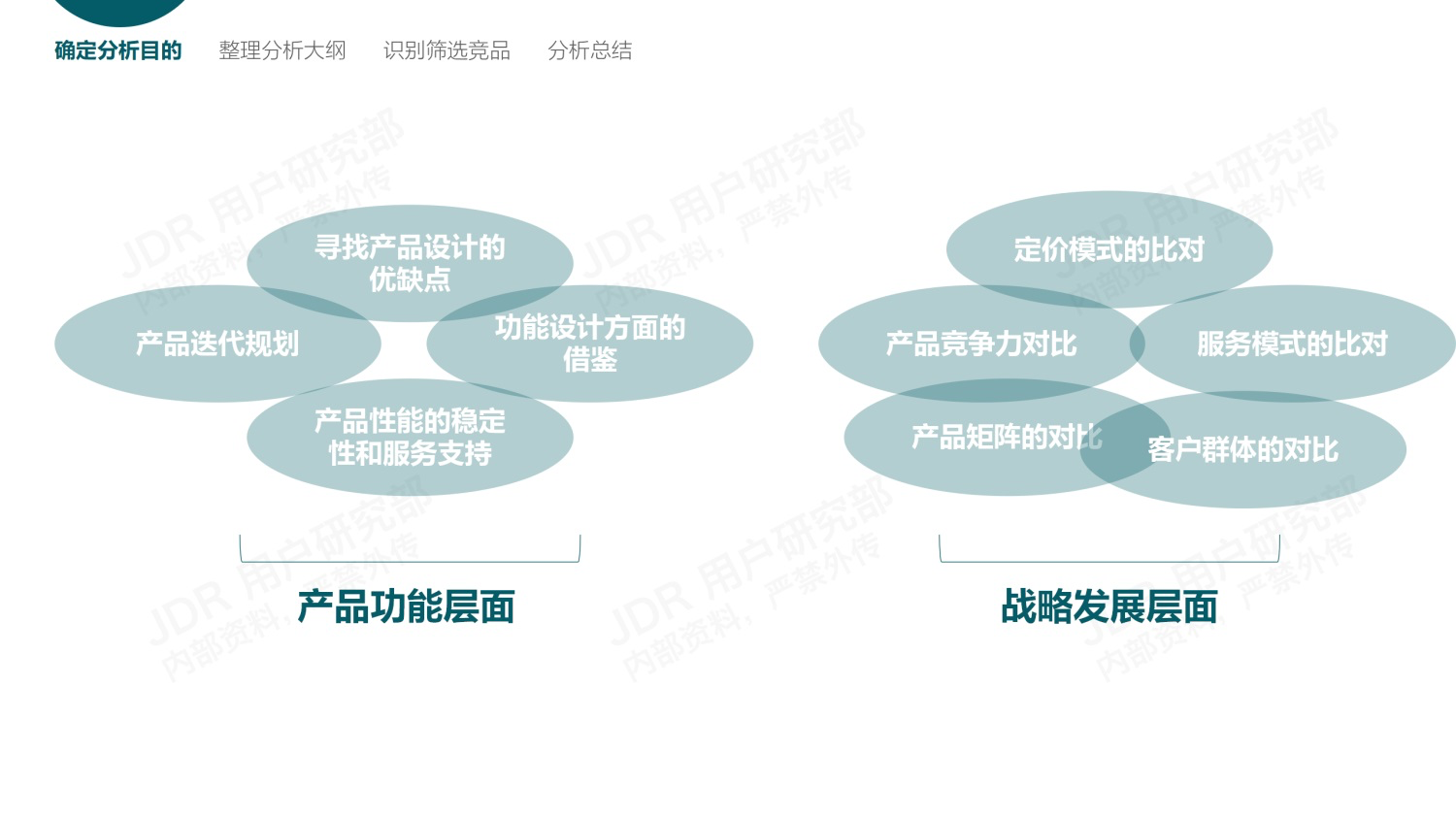 定目標(biāo) → 2. 搭框架 → 3. 找競品 → 4. 巧體驗(yàn) → 5. 對比分析 → 6. 輸出結(jié)論與迭代建議
