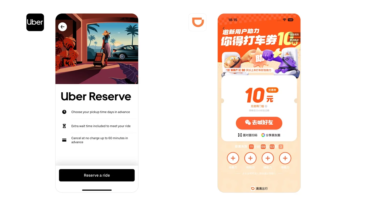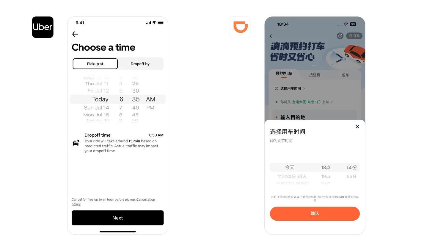海外更注重“功能性審美”——Uber 的黑白配色、簡潔排版,本質(zhì)是“為功能服務(wù)的審美”,讓用戶專注于操作而非視覺裝飾。
