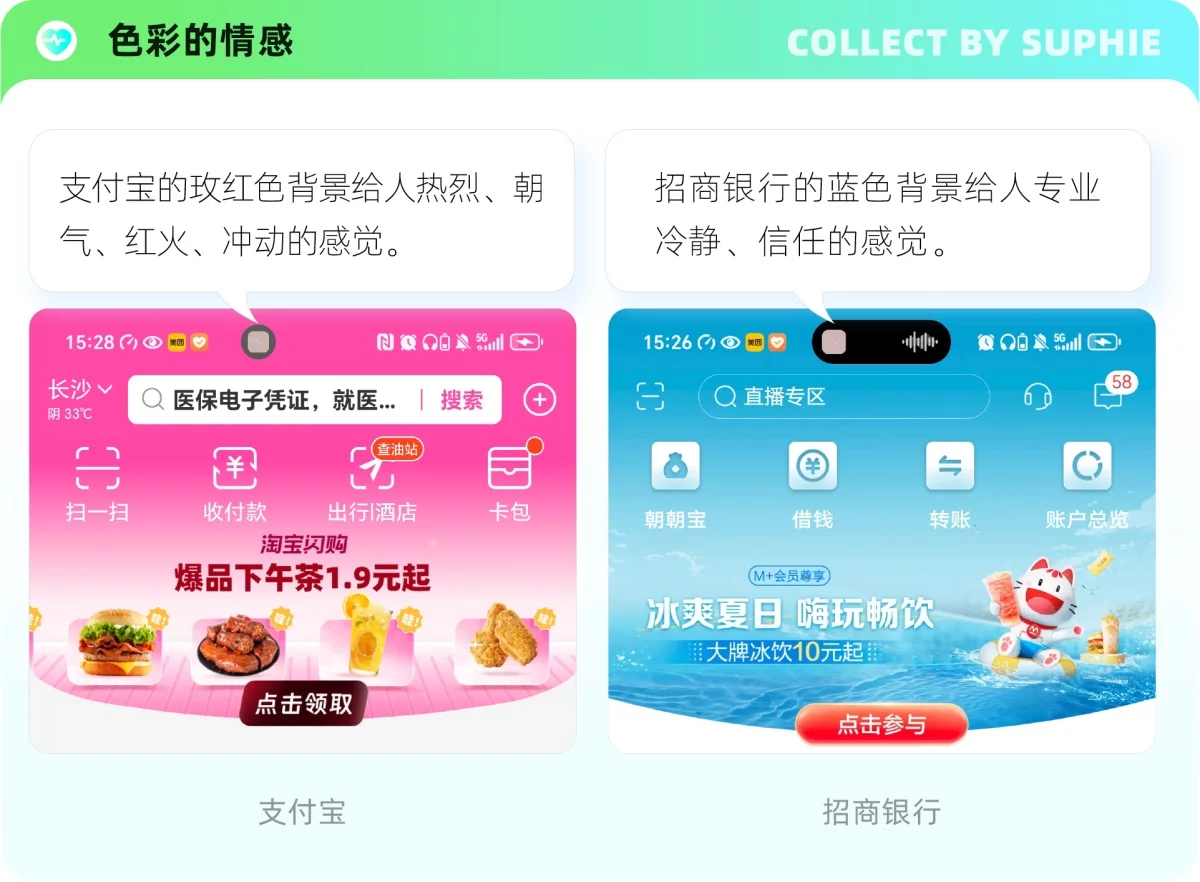 由此可見,國際 App 在色彩運(yùn)用上大多偏好簡潔、淡雅的色調(diào),有助于降低用戶的視覺疲勞,讓用戶專注于內(nèi)容本身;而國內(nèi) App 則常用豐富鮮艷的色彩組合來區(qū)分功能模塊,通過強(qiáng)烈的色彩對比營造活力滿滿的視覺氛圍。